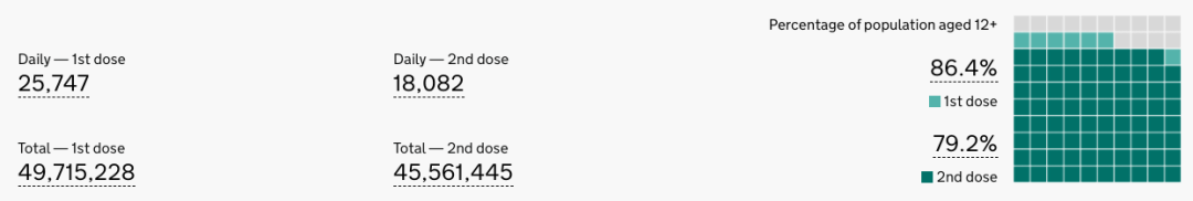 与此相比,英国昨天确诊了39962例新病例和72例死亡,上周这个时候确诊了49156例新感染病例和45例死亡。