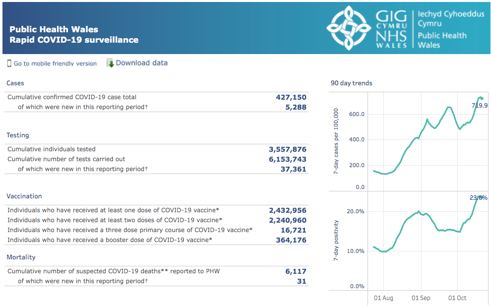 据卫生官员称,威尔士的Covid - 19感染率再创新高。在过去7天里,每10万人中有719.9人感染。