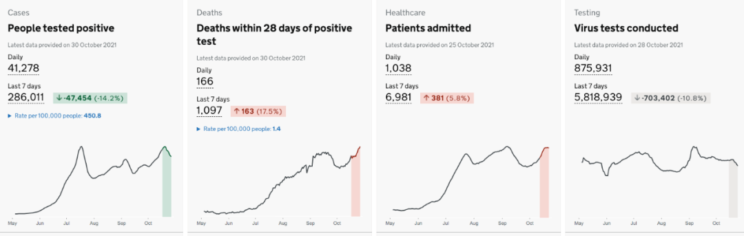 在10月17日至10月23日(最近完整一周的数据)期间,总共确诊了26465例新的阳性病例,比前一周增加了近4000例。10月28日,伦敦近3500人新冠病毒检测呈阳性。