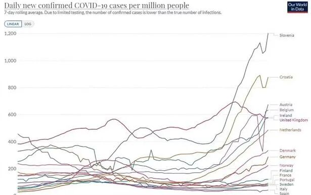 奥地利、比利时和爱尔兰的感染率超过了英国,尽管这三个国家对疫苗护照和口罩都有更严格的政策。