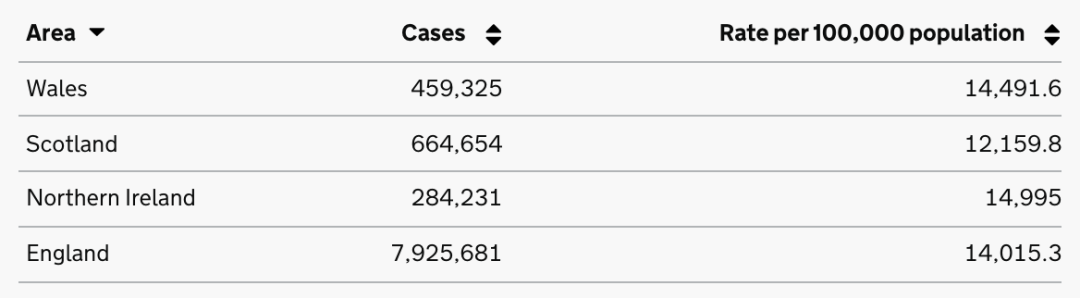 与奥地利(674.04)、比利时(634.13)和爱尔兰(580.44)相比,英国的感染率为574.31 /百万人。
