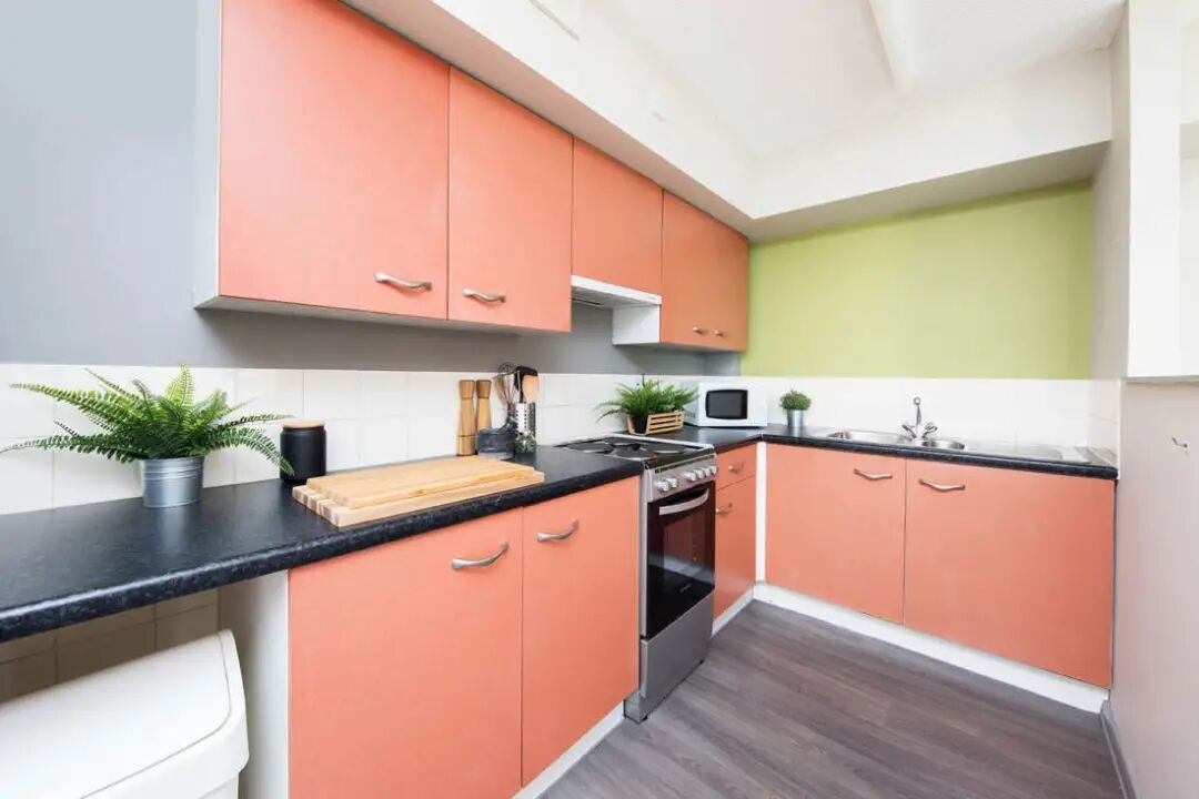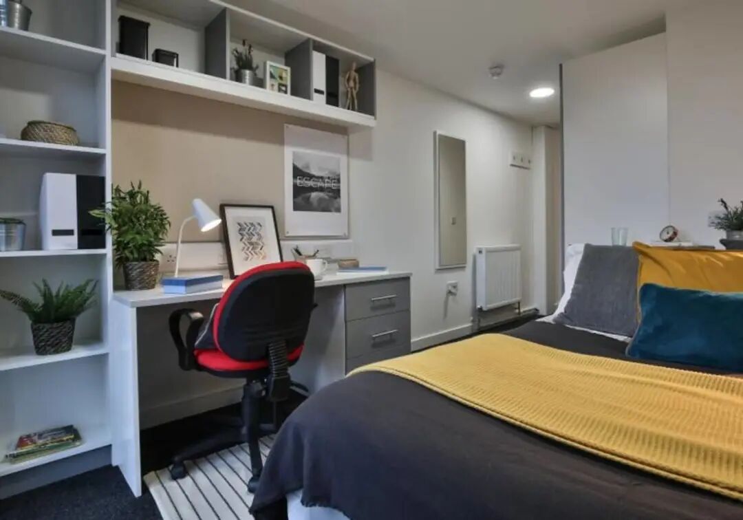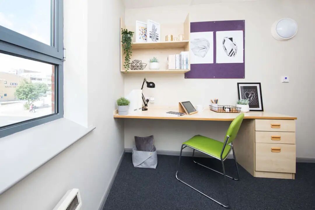 Exchange Works学生公寓提供了94间2-8室套房。公寓的绿化覆盖面广,有两个大庭院,里面配备了乒乓球桌,座椅等休闲设施,适合同学们聚会交友。除此之外,公寓的公共休闲室也是一个很好的社交场所,舒适的座椅,免费的桌球和桌上足球,还可以收看Rreeview。