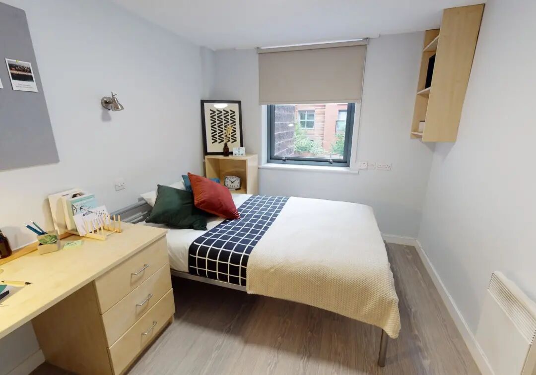 Grosvenor House公寓在莱斯特市中心提供现代化的学生房间和单人套房,距离德蒙福特大学仅有2分钟的步行路程。附近还有索尔河和城堡公园,是该市最漂亮的景点之一。公寓还设有室内外社交区,室外庭院和带电视和游戏的休息室。现在预订可享£300返现优惠,可选11月、12月或明年1月入住。