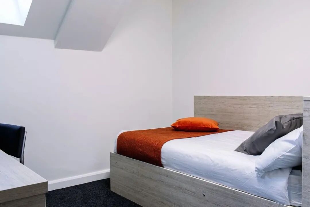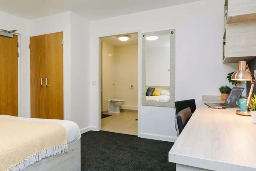 公寓有一系列的En-suite(独立卫浴单人间)可供学生选择。 En-suite(独立卫浴单人间)设计现代,配套设施完善,包含公用厨房及客厅,独立卫浴以及充足的学习生活空间。每个En-suite(单人间)具体包含配备齐全的个人独立卫浴,舒适的单人床或4英尺双人床,床底丰富的储物空间,定制衣柜等。共用厨房包括灶台,烤箱,冰箱,耐用美观的工作台面等。公寓提供公共区域定期保洁服务。