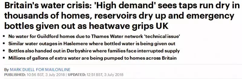 甚至,今天开始,英国正面临着水资源短缺的问题,因为“高需求”使得成千上万的家庭的自来水没了,只能在紧急情况下发放瓶装水。