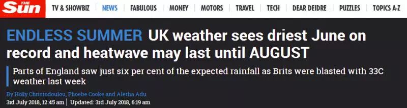 《太阳报》:无尽的夏天-记录上最干燥6月,热浪可能持续到8月