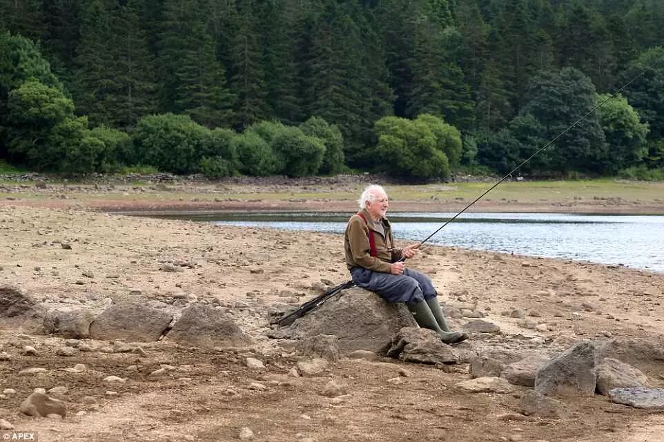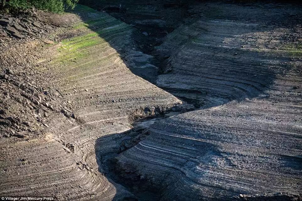 无情的热浪使得很多河流湖泊都没什么水了,将水库的河岸变成了干旱的沙漠。