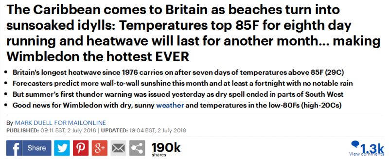 《每日邮报》:高温已经持续8天,热浪还要继续一个月