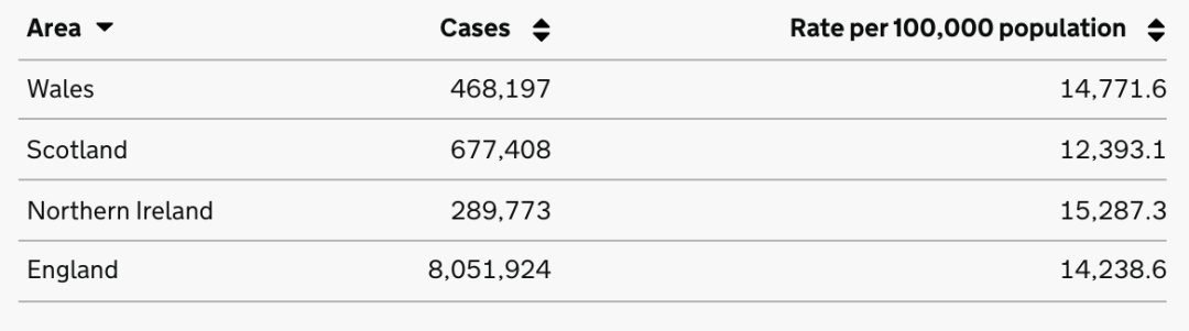 英格兰、苏格兰、威尔士、北爱尔兰各地数据