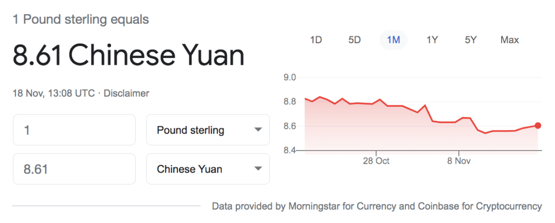 今日英镑兑人民币汇率 1: 8.58