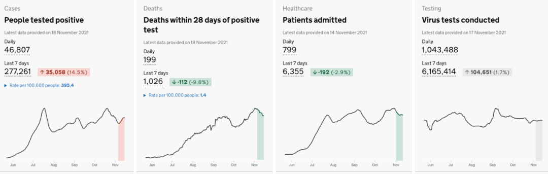 英国每日新冠病例感染人数再次上升,但住院人数下降,死亡人数持平,疫情变得越来越不可预测。