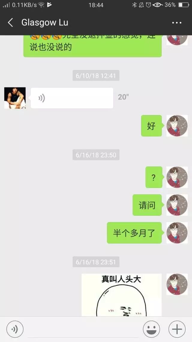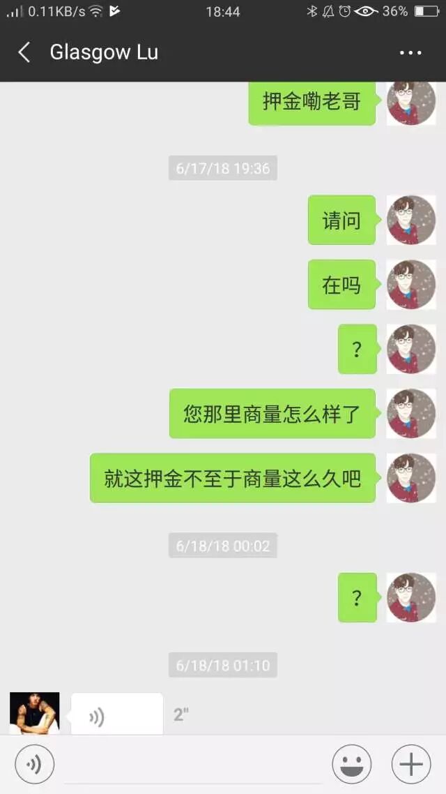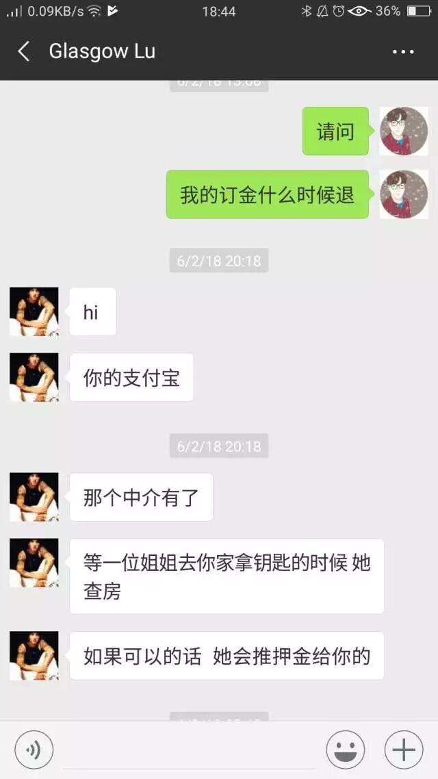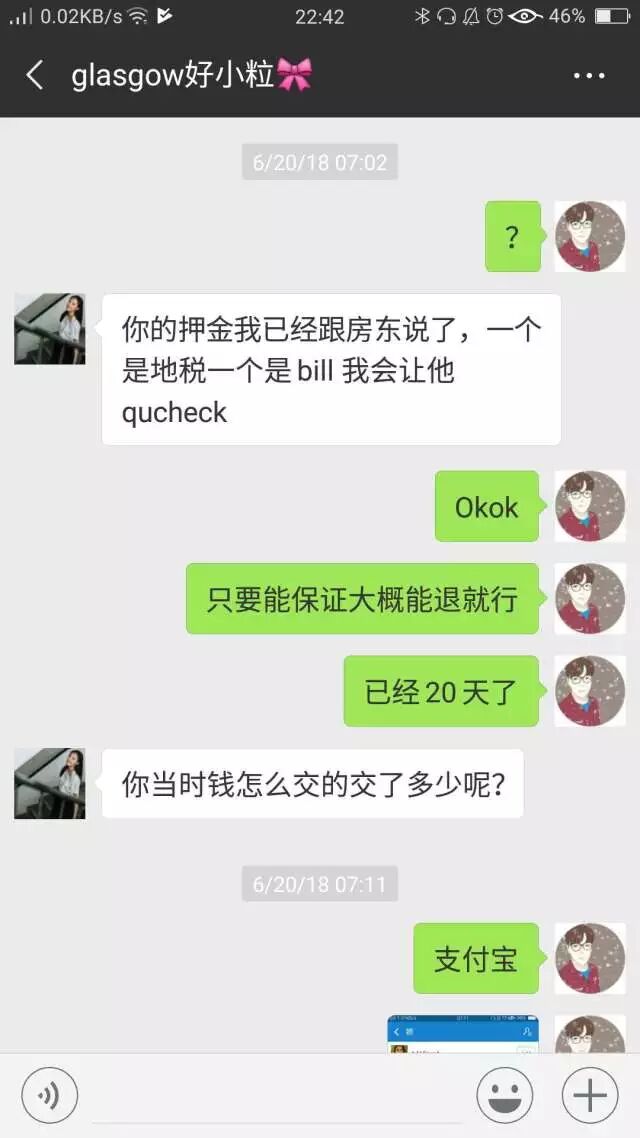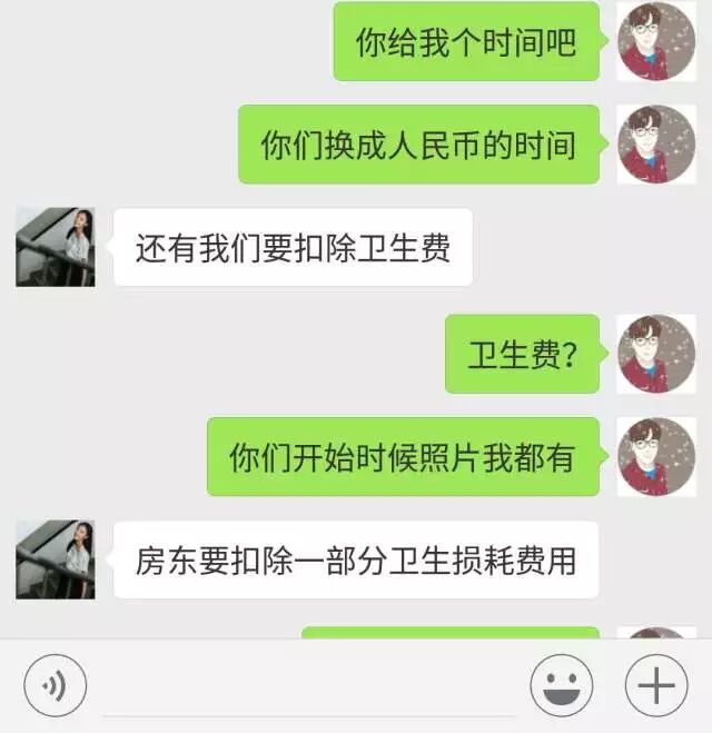 她这时候说退,包括之前中介也给我保证过没问题肯定是退的。因为在我离开20天了她还不退,我真的有点崩了,所以就威胁说要报告给上面,她竟然真的是死猪不怕开水烫?仗着我已经回国了,就各种不理不说,然后直接说那你去告。
