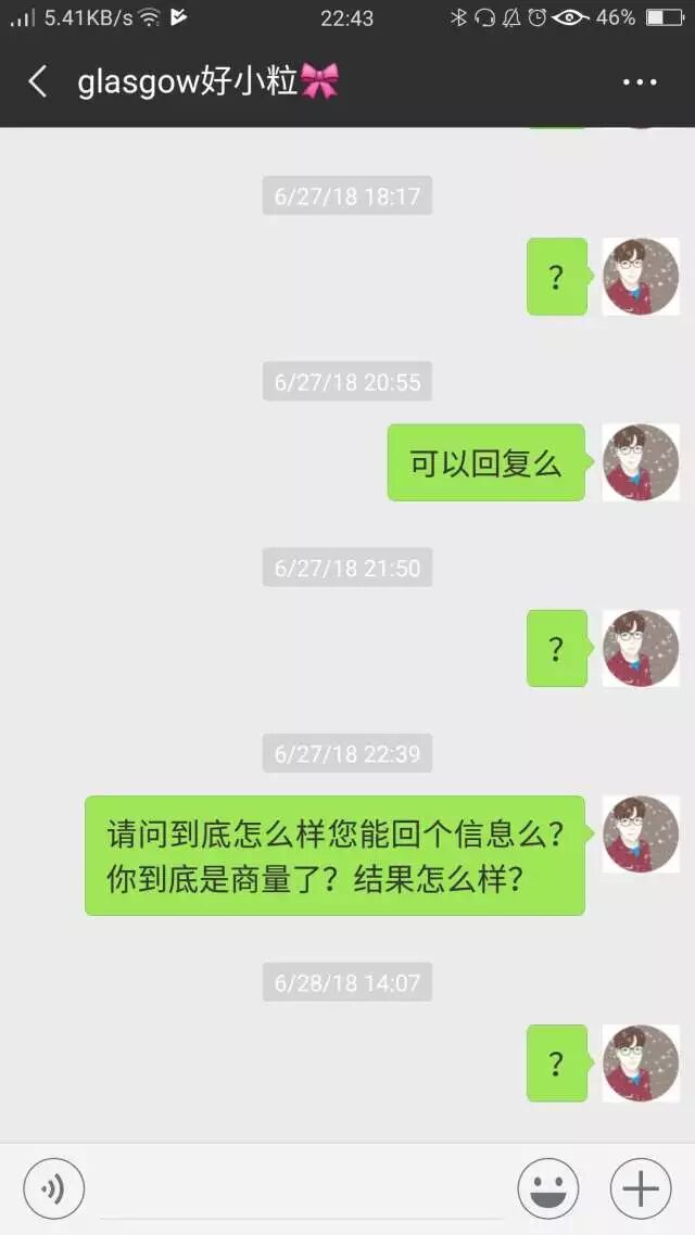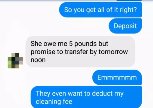这些糟心事情一大堆先不提了,但是最糟心的是什么?我是6月1号离开的格拉斯哥,当天检查房子的人打电话说没时间,说让我把钥匙留下来就行了,押金之后会退的,然后就发生了这些。