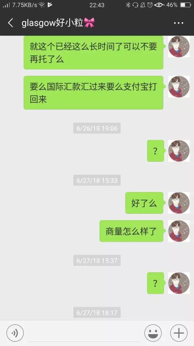 我说实在不行那就这样吧,那你国际汇款总行吧,人家还嫌麻烦?中介拿着押金不想退觉得麻烦?真的您身体太尊贵了!然后呢,我再想问人家就不回复了?不回了真的是。