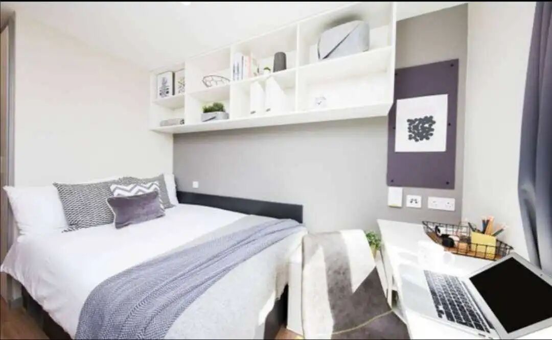 房间面积为21㎡,包水电费 Wi-Fi。地理位置极佳,位于town中心,距离火车站6分钟,楼下是大Sainsbury和C-Mart, 距离M&S, Wilko, Primark步行五分钟左右。楼下既公交车站。生活购物极其方便。公寓安全干净,楼下24小时reception及security。公寓有公共洗衣房以及一些娱乐设施。转让走正规公寓合同