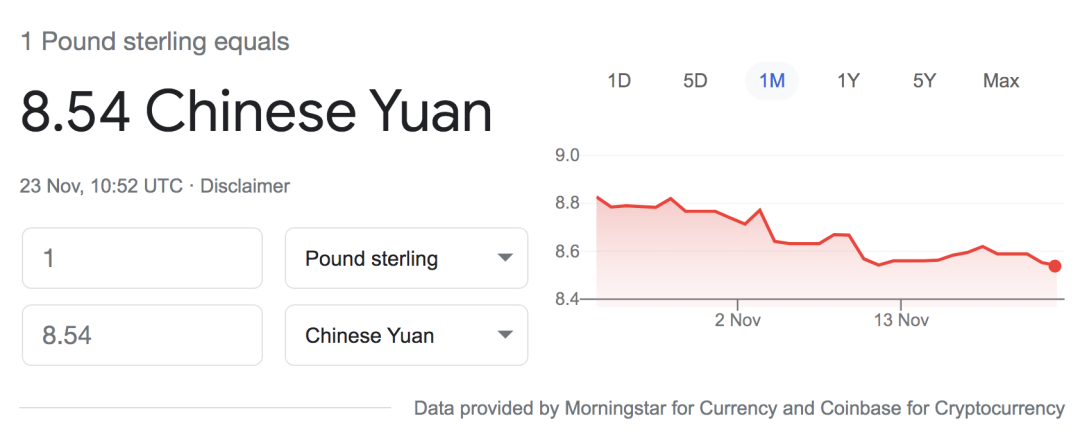 今日英镑兑人民币汇率 1: 8.54