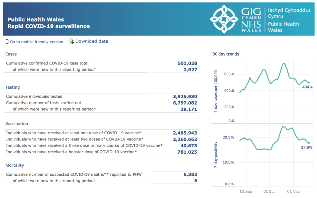 10月22日英国确诊49,298例阳性检测,147人死亡。