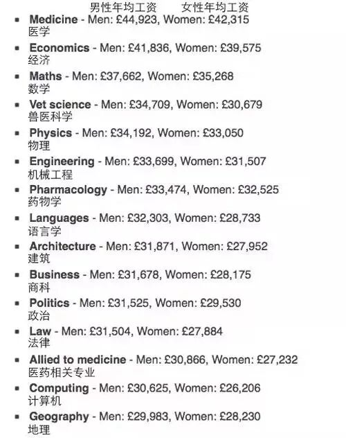 医学、经济学和数学,这三大专业以毕业生年收入35,268~44,923英镑(约40万人民币),名列前茅。