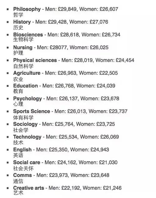 3.而那些文创、传媒和社会关怀类的学生在毕业后的五年内赚得最少,大约2万英镑;