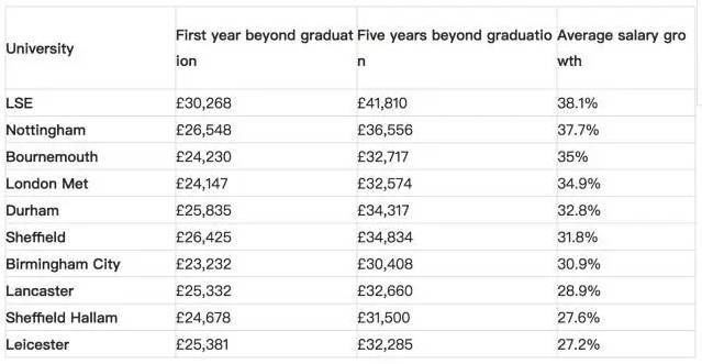 从上面排名可以看出:LSE的毕业生薪酬增长最快,5年来薪酬增长平均值高达38%!