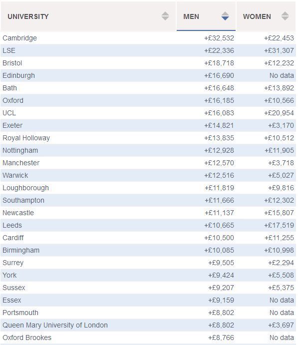 其实,除了专业、性别、个人家庭背景对毕业生的薪资有一定影响之外,不同的英国大学也对毕业生的薪资水平有很大的影响。