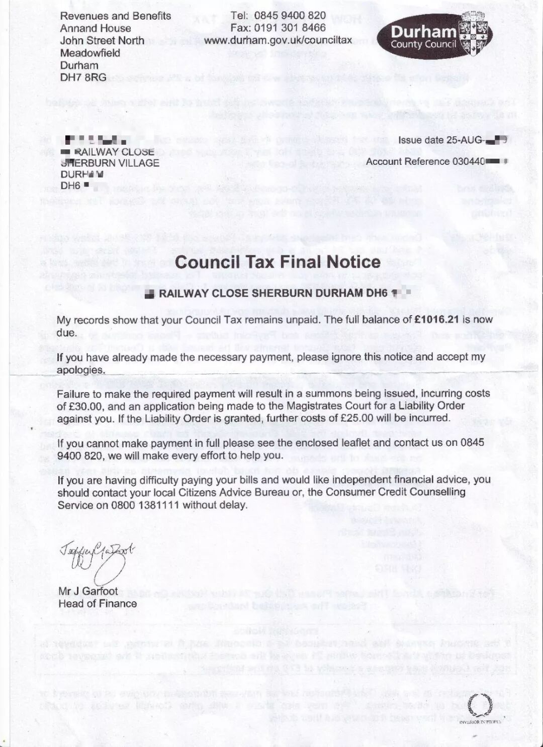 Council Tax Committal Notice 并且说如果不交将要上法庭或者进监狱