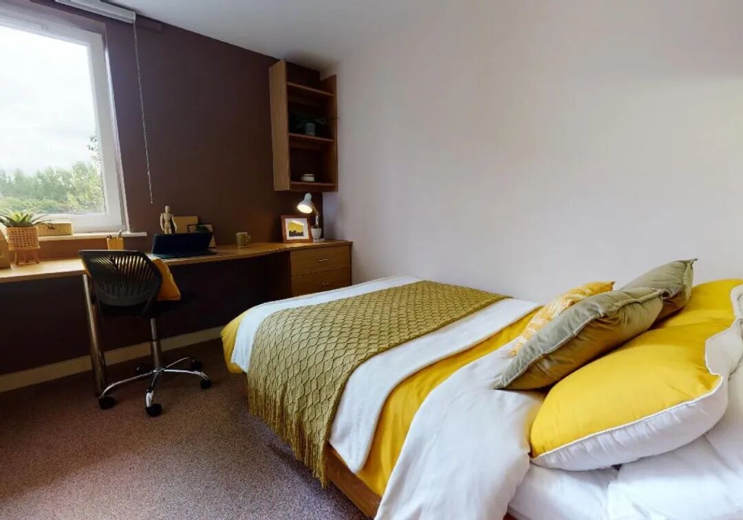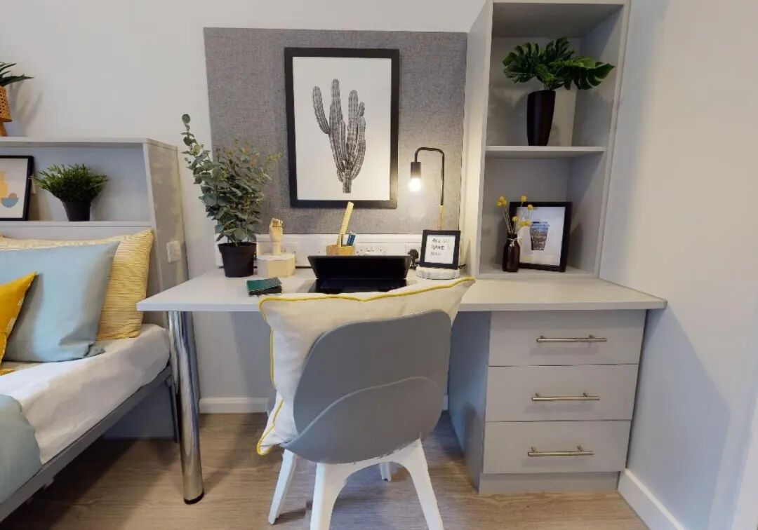 房间配有充足的储物空间和学习区域。