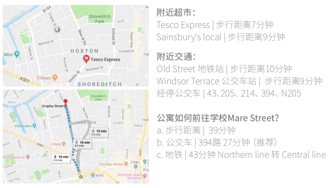 参考谷歌地图,结合就读学校的地理位置,研究伦敦各个区的位置、交通、人文和治安情况,选出自己理想的区域