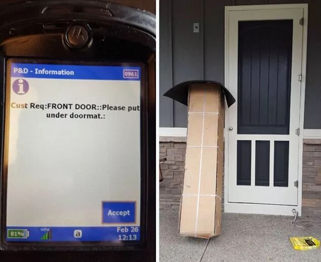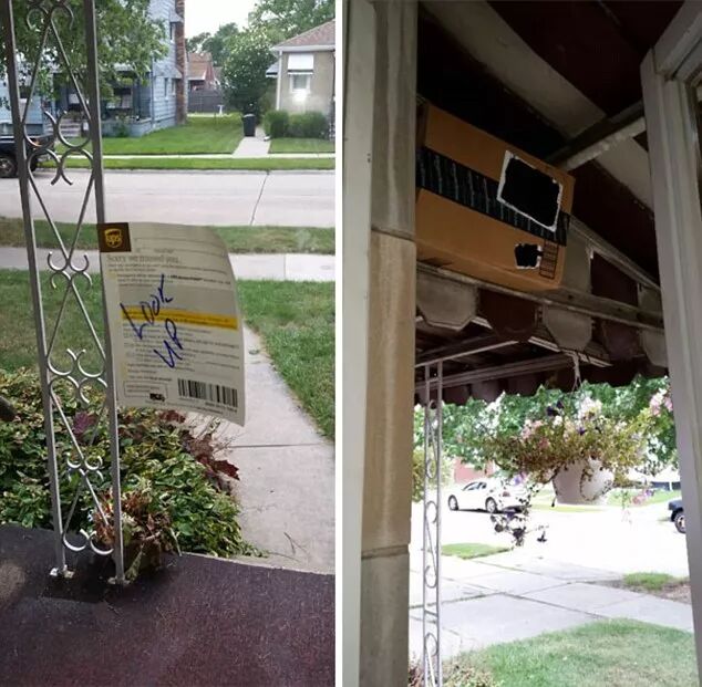 英国住房以小独栋房屋为主,很多地方是没有国内的小区物业的概念的,信件和快递一般都是快递员亲自送到房门前的信箱里。但是有的快递太大,遇到收件人不在家的时候,英国快递员都会发挥他的聪明才智解决这个问题——把快递藏起来。