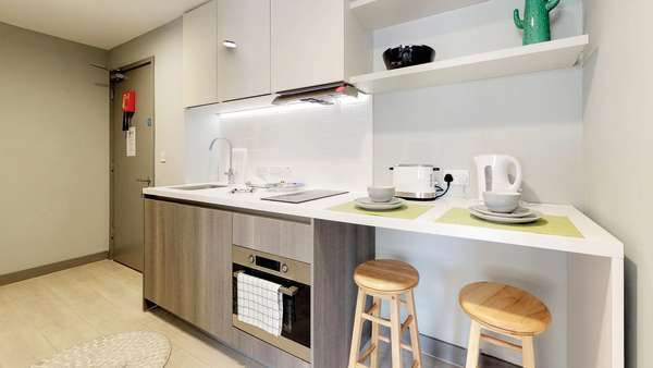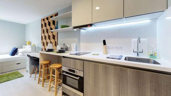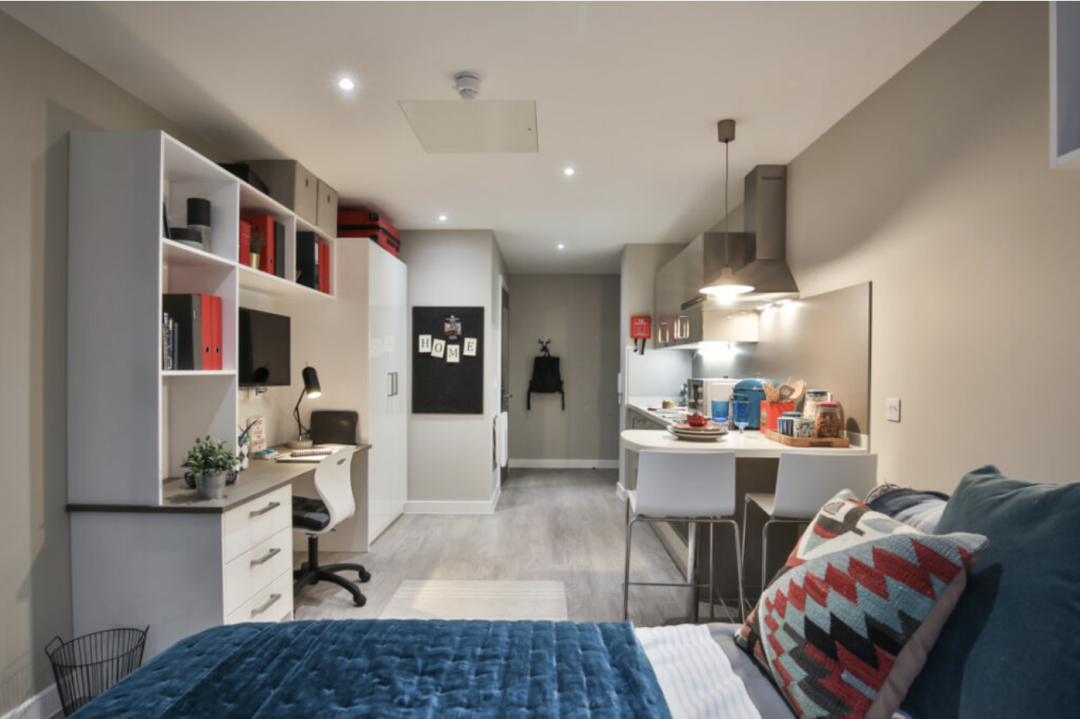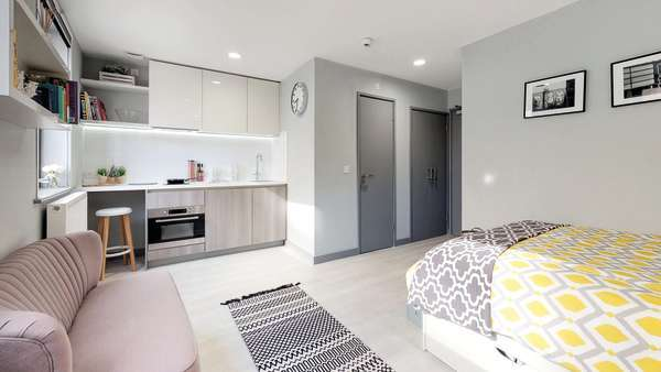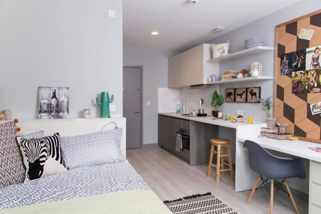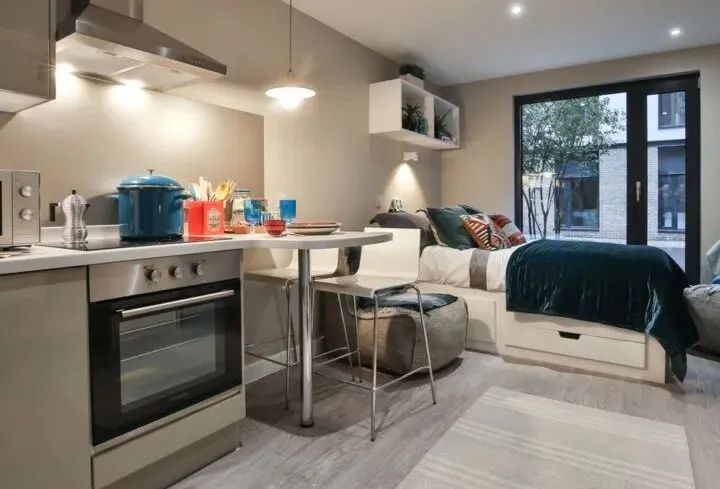 公寓有多种studio 房型可供同学选择,都配备现代化的厨房、宽敞的独立卫浴和豪华的小双人床。公寓配备健身房、电影院和阅览室来满足各种同学的需求。难得的是,公寓还附带Perkbox 会员,让你可以在心仪的高街商店获得独家折扣和优惠哟!