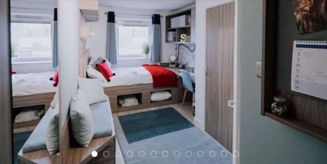 2分钟就到地铁站,门口有超市,。公寓有顶楼观景露台,休息室,自习室,和健身房。位置就在伦敦东边金融区,房间落地窗风景也很不擦!