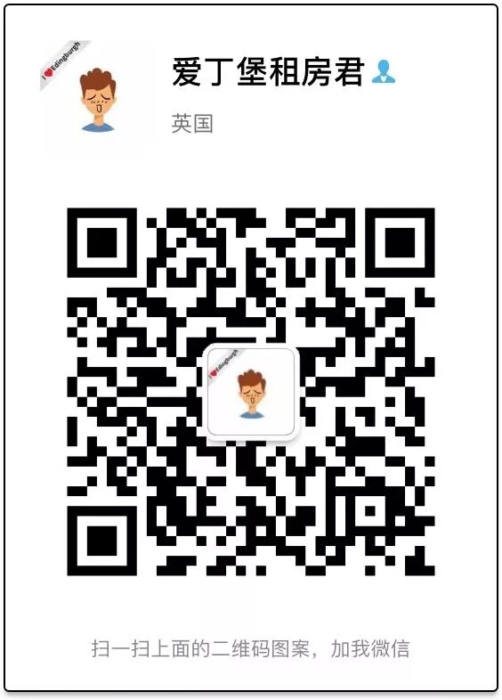 扫码添加爱丁堡洪玮学长(原租房君)为好友,君君为你们免费发布爱丁堡当地的求组转租的信息,当然可以加君君了解圣诞假日爱丁堡当地转租信息,让各位想来爱丁堡旅游的亲找到住宿。