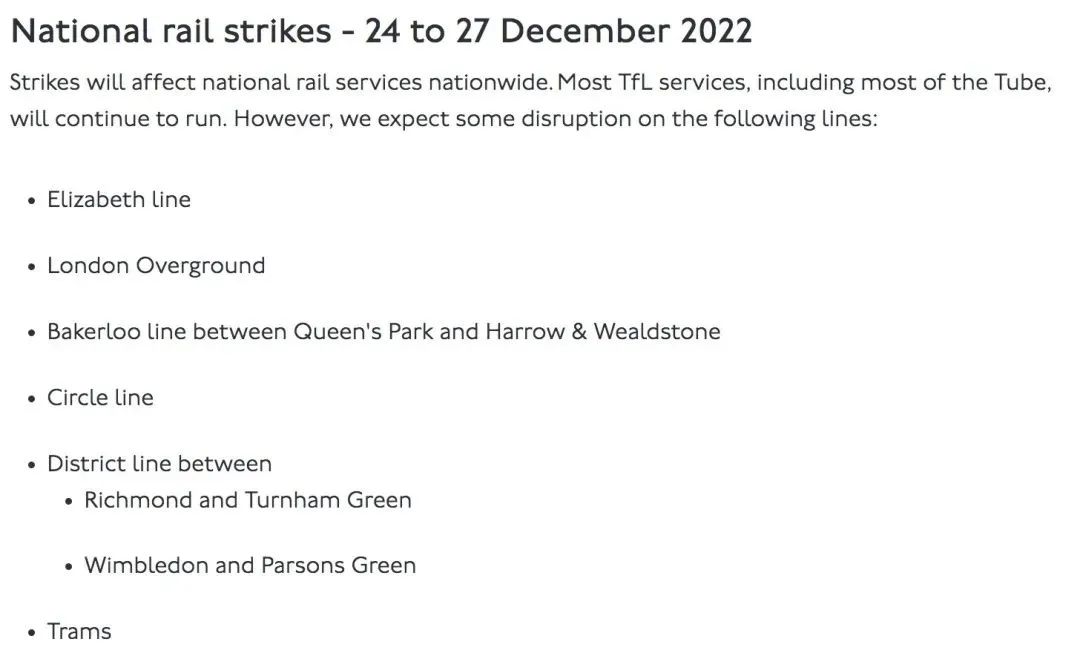 具体罢工时间为:12月24日、27日、31日,以及明年1月4日、5日、10日、12日、16日、19日、25日和26日,切记哦,跨年夜也要罢工。