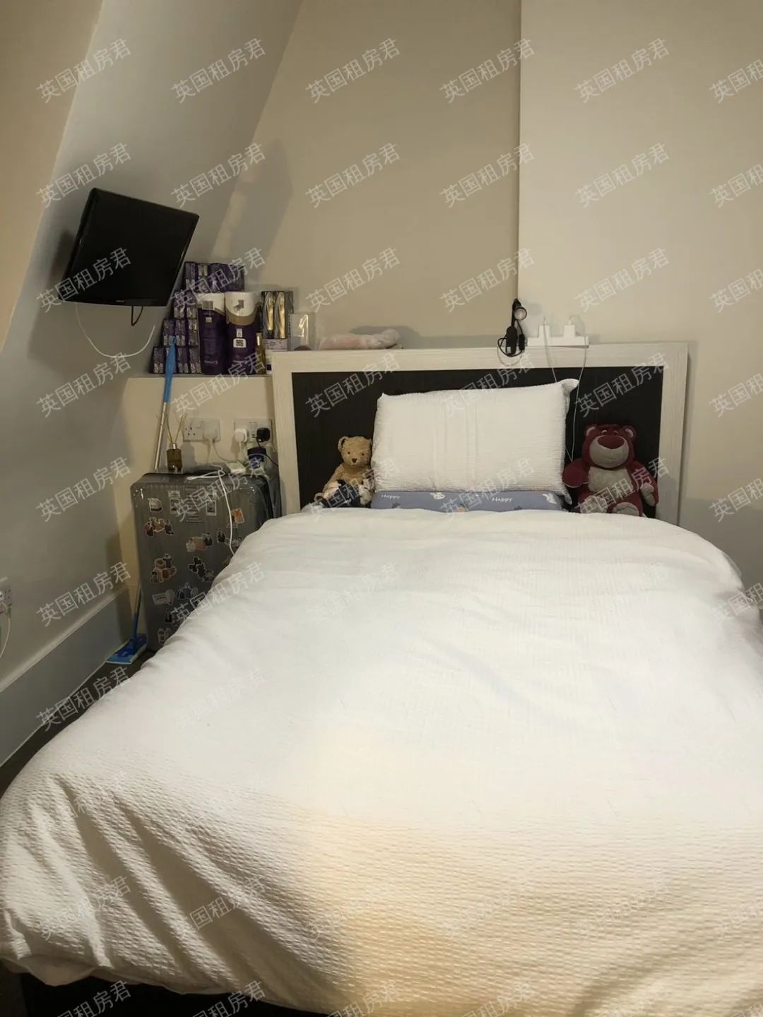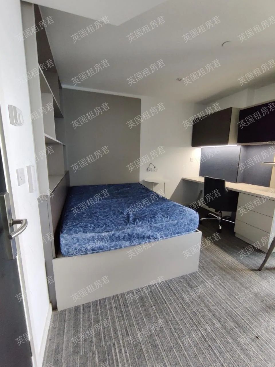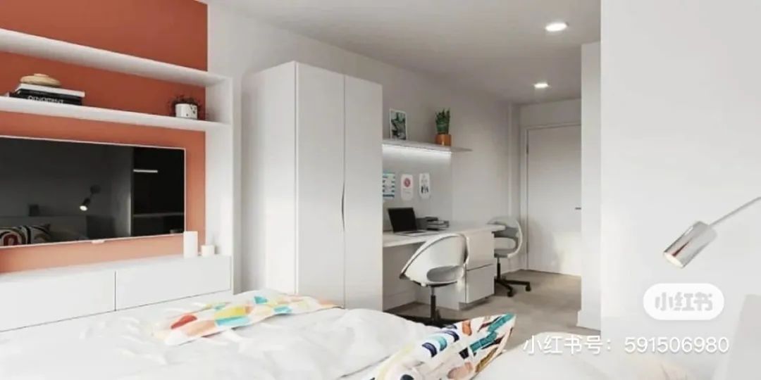 房间自带书桌、衣柜、床头柜,可领包入住