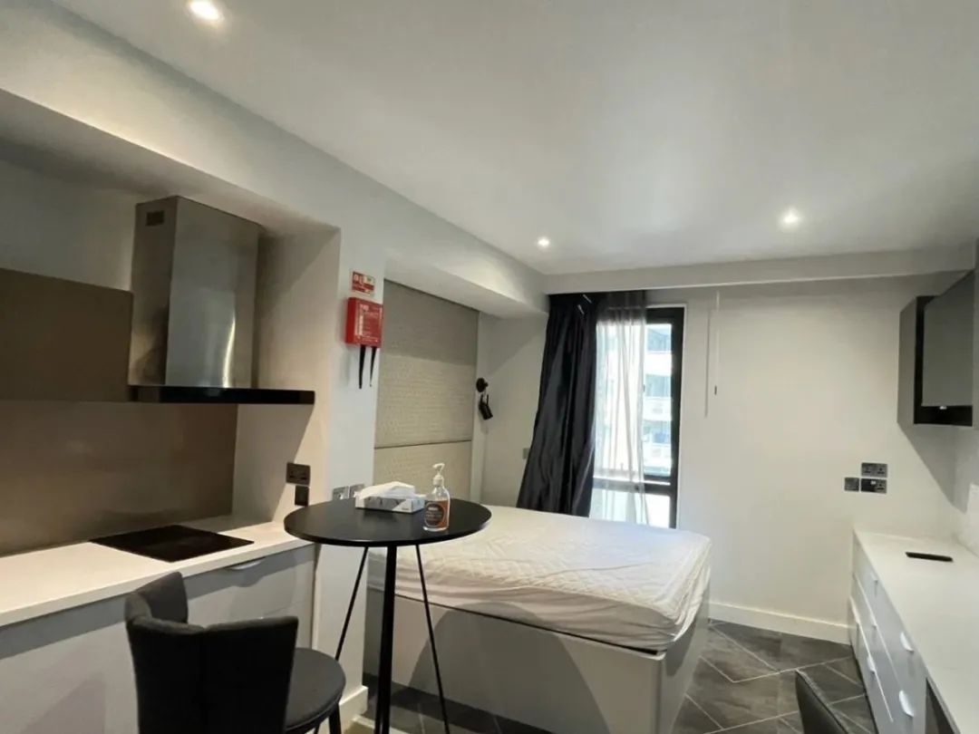 走路八分钟到格拉斯哥大学门口,我在浴室配了可折叠浴缸,落地窗旁边配了地毯,还有超多厨房用具都送。室友全是安静的中国女生,人特别好。