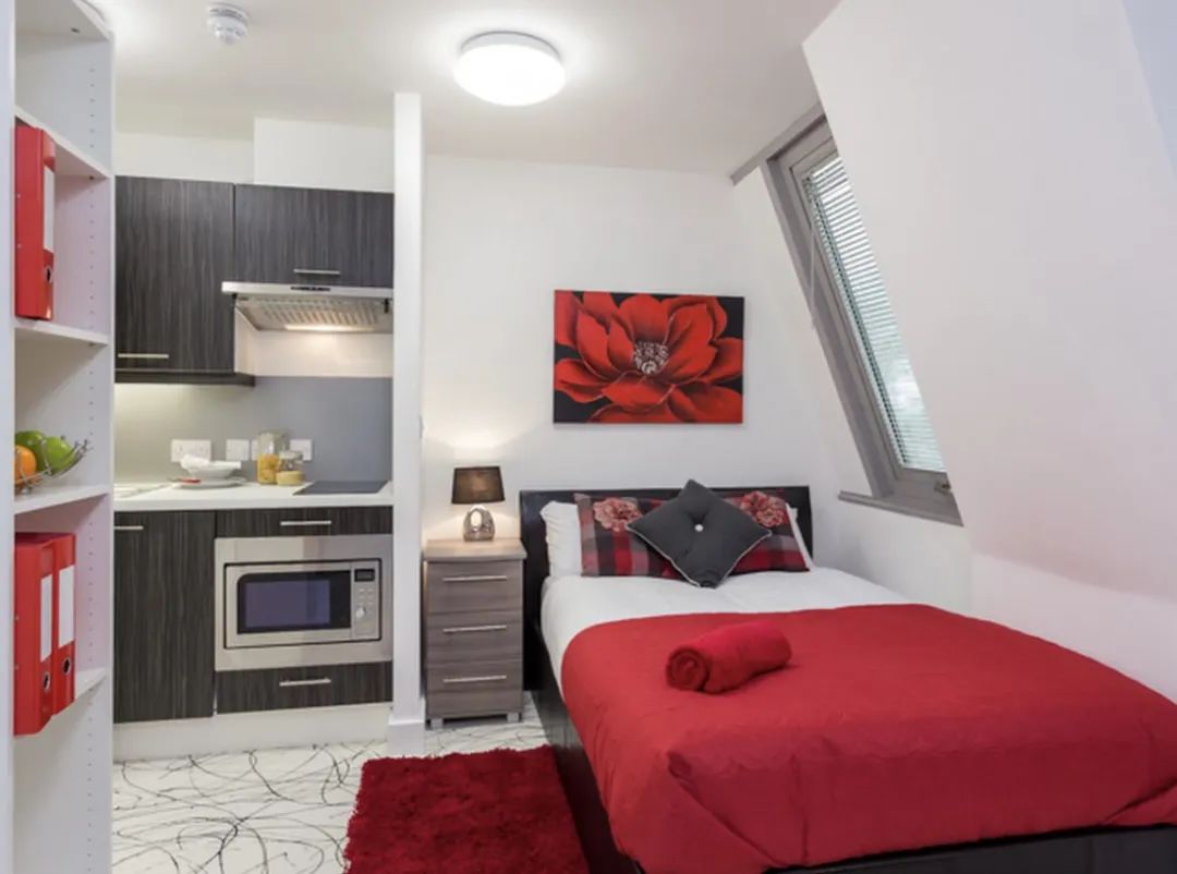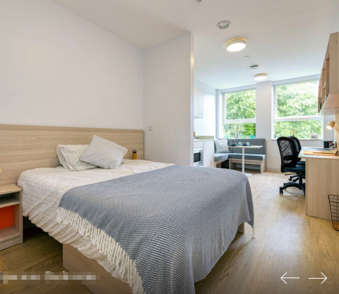 Vita最大户型30平Studio, king size床支持双人入住,对情侣来说非常友好,房间配备烤箱、洗碗机等,房间真的巨大,studio天花板顶配。周一到周五有免费的早餐,公寓设施配备齐全有健身房、学习室、影音室、台球、麻将桌等,楼下出门就是南安最大的sainsbury,离海菲校区只需走路十分钟。