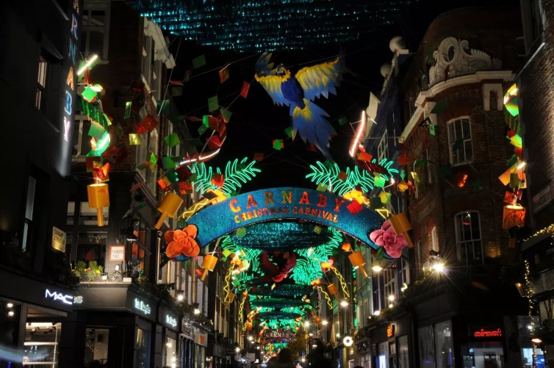时髦的Carnaby Street链接附近几条街道组成美美的圣诞花灯!这里真的很适合打卡拍照!而且呢~如果你在此区购物,可以在大多数商店享受八折优惠!千万别被彩色霓虹灯闪花了眼睛啊~