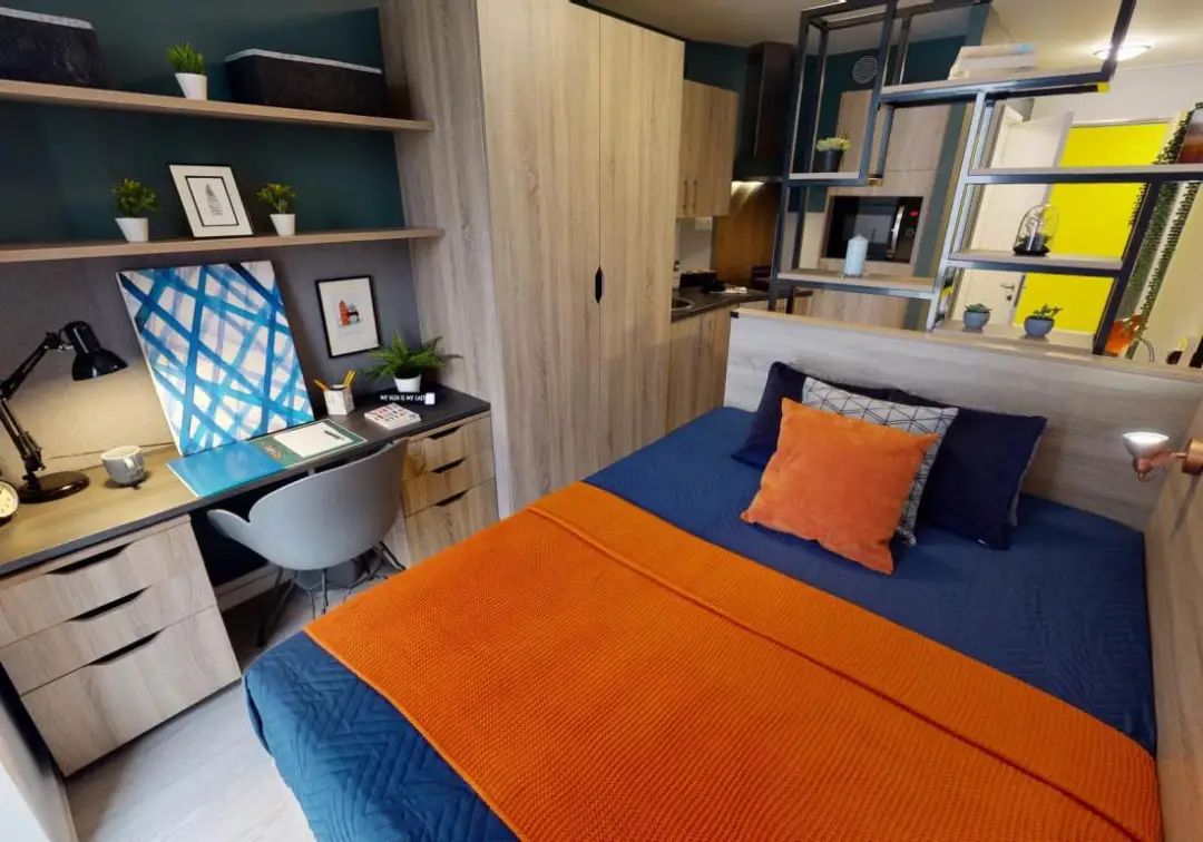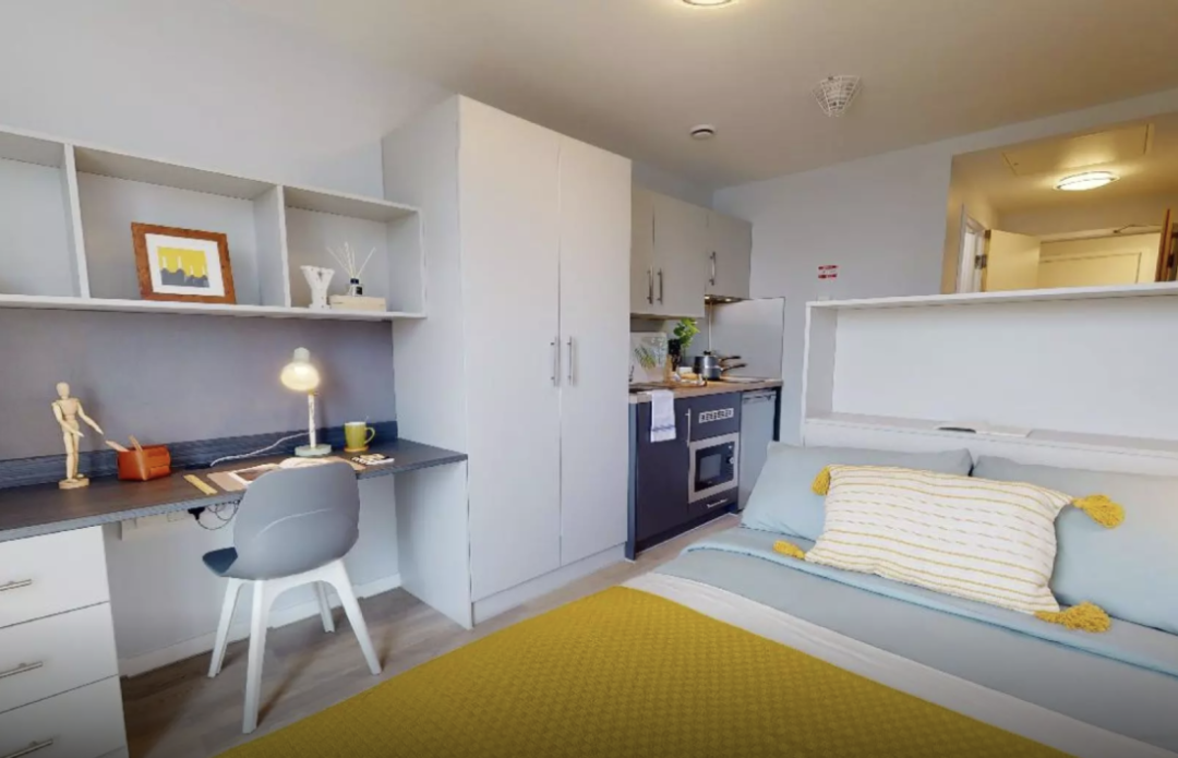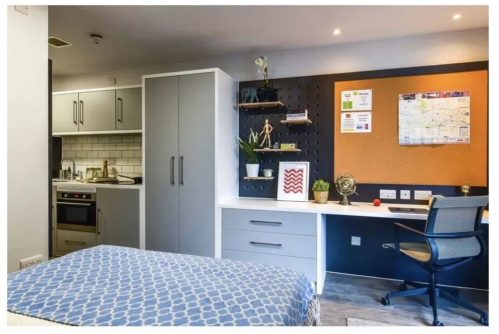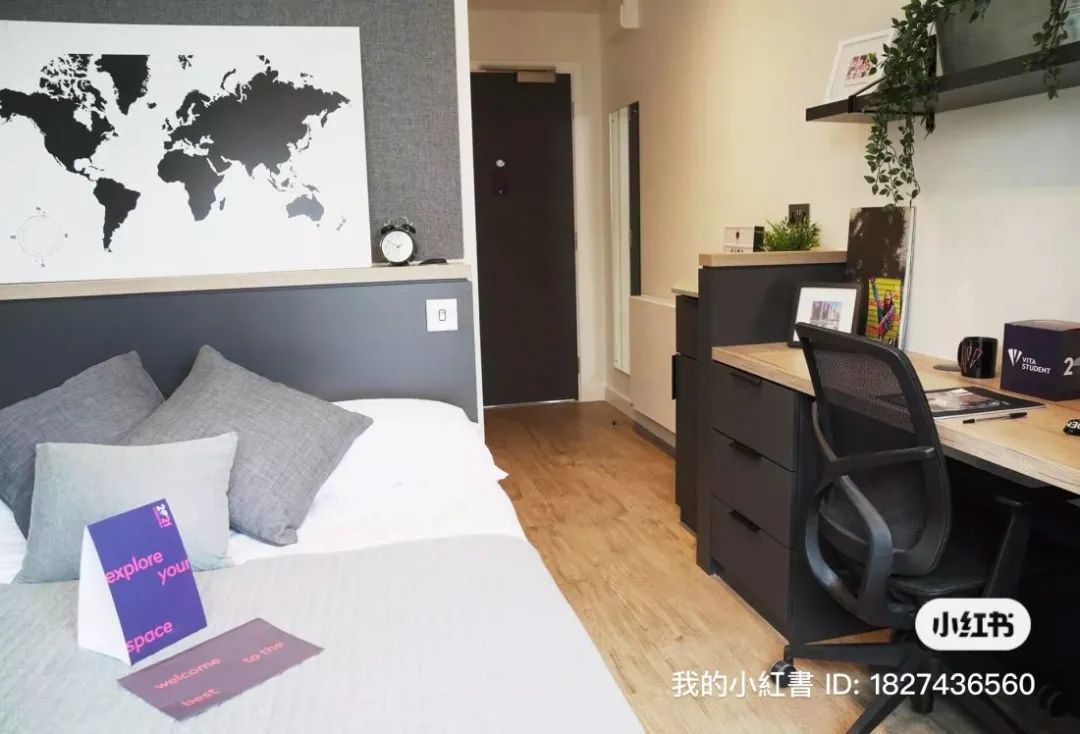 房型:ensuite E栋6层 五人间, 室友有3个女生和1个男生,3个中国人,1个ual,其余都是ucl学生,室友人都超级好,也都很安静,平时都没有party之类的。独立卫浴,有暖气,公共厨房房间很大,有沙发、电视、2个冰箱、4个炉灶、微波炉、烤箱等一应俱全。屋内有学习桌、衣柜、小立柜,可以容纳超多储物!