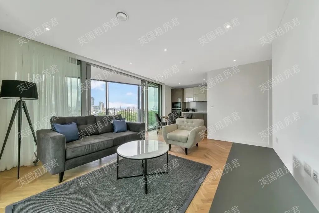 公寓在Battersea Power Station旁,紧邻泰晤士河 大落地窗河景房有两个阳台