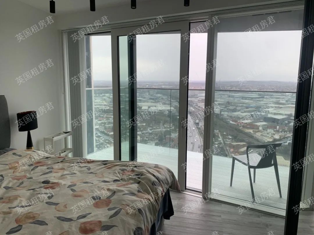 【设施】51平1b1b高层公寓,11月刚交付入住的新公寓,房子位于33楼视野超级好。独立卫浴,洗衣烘干一体机,厨房,配备齐全的家具,一个专门的储物间。24小时CCTV 和安全门禁系统、24小时安保。房子附近有Tesco, Sainsbury's,小中超,满足日常需求,公交车20分钟有龙凤行大中超,大sains。