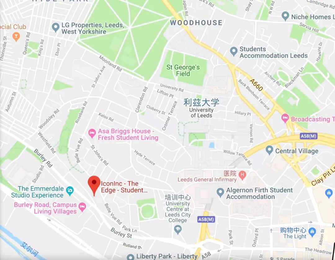 Iconic地处宿舍群burley和briggs之间,距离离商学院十分钟左右路程,是除了briggs之外离商学院最近的学生公寓。