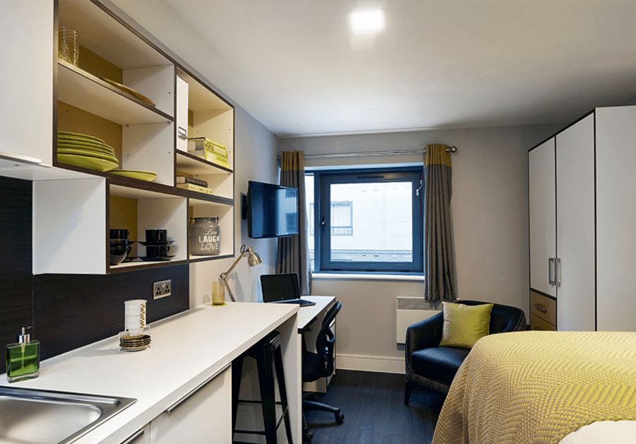 这已经可以算是利兹里面最大面积和装饰的房间了吧,记得小编第一次去学校分配的CV的时候真的吓了一跳,房间小的除了刚进门就是一张学习桌,然后就只剩床了…