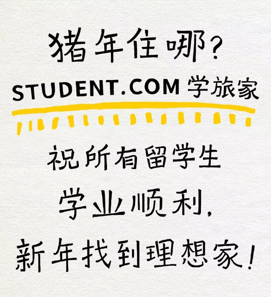2019春节来临之际,寝室长代表所有 STUDENT.COM学旅家 的小伙伴祝全球留学生新春快乐,学业顺利,新年找到理想“家”!