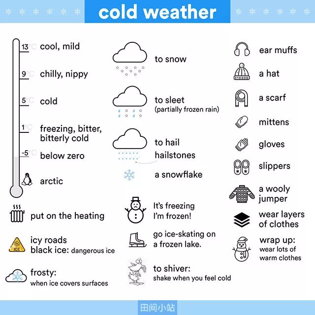 wrap up: wear lots of warm clothes 穿着厚实暖和的衣服