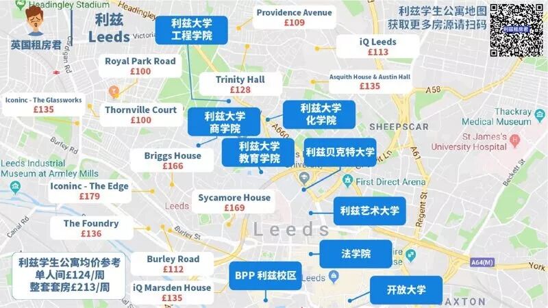 iQ Leeds学生公寓位于利兹市中心以北,步行不到半小时或乘坐公共交通即可抵达利兹大学、利兹贝克特大学、利兹艺术学院和利兹城市学院。公寓靠近海丁利(Headingley)繁华的学生区,并且会定期组织社交活动,这里是结交新朋友的好地方。