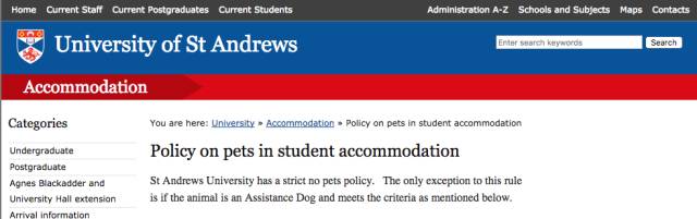 圣安德鲁斯大学规定,只有接受过训练的狗,才允许,其他宠物一律不允许。