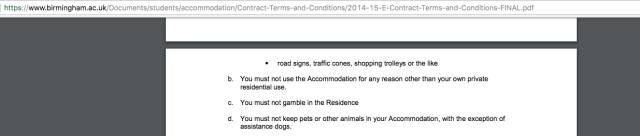 伯明翰大学直接拒绝所有的宠物!no pet!