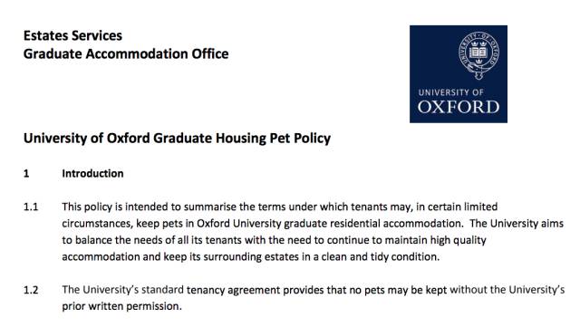 牛津大学规定,没有学校的许可认证是不可以养宠物的。