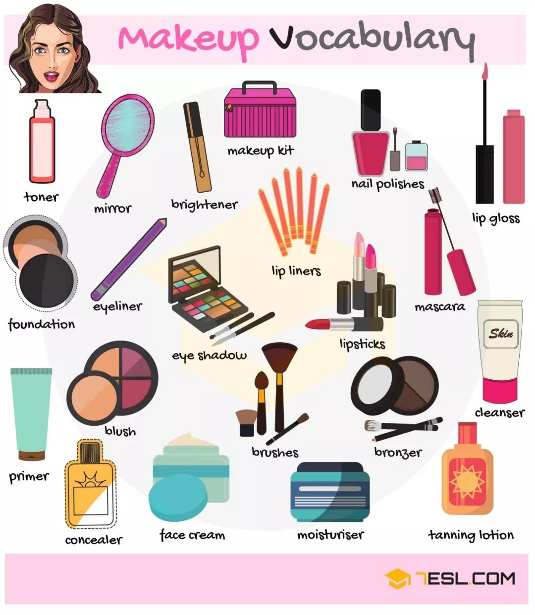 Cushion Foundation就是女生出门必备的气垫,blush是腮红,brush是化妆刷子,foundation是粉底。 美语里有句话是paint her face,就是说一个女孩子在化妆,和刷墙用的竟然是一个动词。
