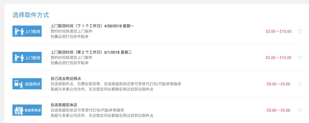 不少电商平台都和DHL合作,他们家在英国境内寄大包裹非常合适,还提供上门取件服务,非常方便。主要针对英国境内。